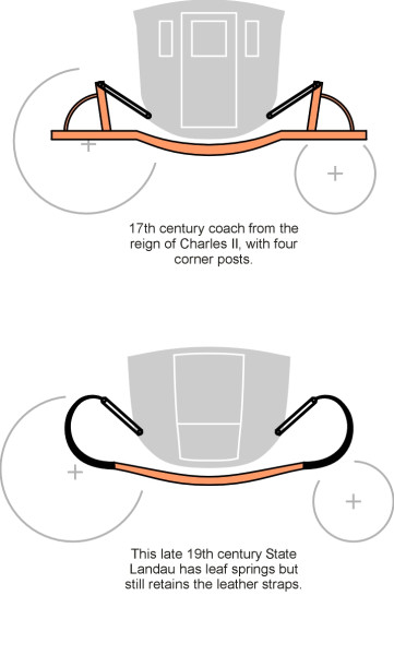 Before the Industrial Revolution, travel was an uncomfortable business. Few people ventured far from their homes, and only the well-to-do travelled by coach. The early coach had no springs, and the passenger compartment hung by leather straps from a vertical post at each corner of the under-carriage (figure 1). This gave some relief from the jolts induced by potholes in the road surface, but it produced an unpleasant swaying motion that made passengers feel ill. Those who could tolerate the motion were said to have been ‘coached’. Long after springs were introduced during the 17th century, the leather straps remained, and today we still refer to any mechanical system intended to soften the ride as a suspension. It is an important part of any vehicle that rests on wheels, including railway trains and aircraft.
