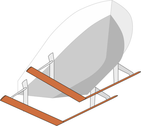 Unlike those acting on a displacement hull, the forces that support a hydrofoil craft are concentrated on relatively small areas of blade, and this can cause problems during service. The blade surfaces tend to become scratched and pitted, which raises the friction drag. To work efficiently, foils and the struts to which they are attached must be kept smooth and clean, which implies regular maintenance with the boat lifted out of the water [4]. The supporting struts for the hydrofoil craft shown in figure 5 are hinged so that the strut mounted under the bow can swing forward and retract clear of the water surface for easy access. The aft struts swing rearward.