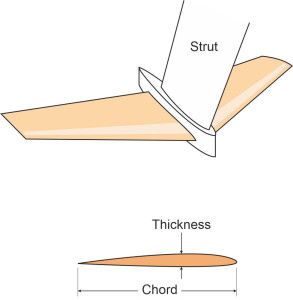 While we’re on the subject it’s worth mentioning a related phenomenon known as ventilation. Ventilation occurs around a body such as a supporting strut that penetrates the water surface (as opposed to lying completely submerged). If the strut cavitates, the bubbles may form a continuous tunnel that links the strut with the atmosphere above the water surface. At this point, the air can leak onto the upper face of a foil blade, where it has an effect similar to cavitation, raising the pressure and reducing the lift [3].