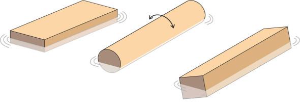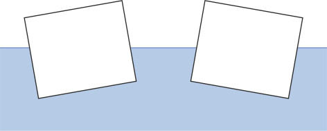 Children love to play with things in water, for example, wooden bricks floating in the kitchen sink. It’s interesting to see what happens when you drop them in, because they don’t always do what you’d expect. Figure 1 shows three bricks, each with a different cross-section. A flat block will float horizontally like a lily leaf and will resist strongly if you try to tip it over, while a circular cylinder has no preferred orientation: it will spin freely around its longitudinal axis when disturbed. But in other cases, the outome is less easy to predict. The third brick has a square cross-section, and it’s floating at an angle to the water surface – not a good model for a cruise liner or a cargo ship.