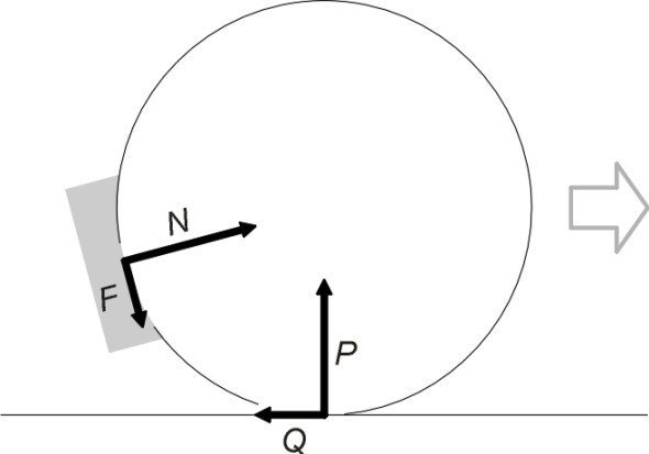 Many people believe that the railway train is the vehicle of the future, a paradigm of advanced technology capable of much higher speeds than the most expensive supercar. Yet trains don’t stop very quickly. The deceleration rate is normally less than \(0.1 g\), compared with \(0.5 g\) for a passenger car. There are three reasons for this, none of which have anything to do with the quality of the brakes as such. The first is that railway passengers expect to move about inside the train without being disturbed by inertial forces, and a passenger who falls over could well be injured. The second reason is that the coefficient of friction between the wheel and the rail is relatively small, and the driver must allow for unexpected variations owing to moisture or detritus on the rail surface. The third concerns heat dissipation, an issue to which we’ll return later.