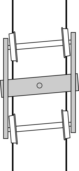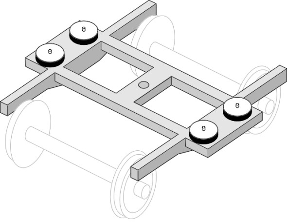 On railway vehicles everywhere, you will see variations on the basic H-structure together with springs and dampers arranged in a variety of ways. There is no ‘standard’ arrangement. Some designs reflect national traditions while others reflect varying needs; for example, the size of the load carried and the operating regime of a freight wagon are very different from those of a high-speed passenger coach. You can find more information on different types of bogie including drawings and diagrams in [18] and [33]. Here we shall choose a few of the most widely used configurations and try to explain how they work.