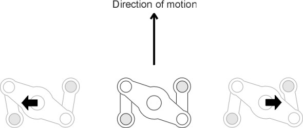 So far, we have considered only vertical impulses acting on the suspension. But, unlike an automobile, a railway vehicle is buffeted by lateral impulses too, which occur when a wheel flange collides with the inside face of the rail. They produce a sideways jolt and consequently a railway vehicle needs some form of lateral suspension, or at least a degree of elasticity, to reduce the impact. Some of the impulses arise from inaccuracy in the rail alignment, such as a kink in a welded rail joint, while others are caused by discontinuities at turnouts, where the wheel meets the toe of a switch-blade, which is never quite tangential to the stock rail (see Section R1603). But potentially the most serious impacts arise from unstable behaviour of the vehicle itself. The phenomenon known as hunting, a zig-zag motion to which all rail vehicles are prone when they are driven above a critical speed, is dealt with separately in Section R0418.