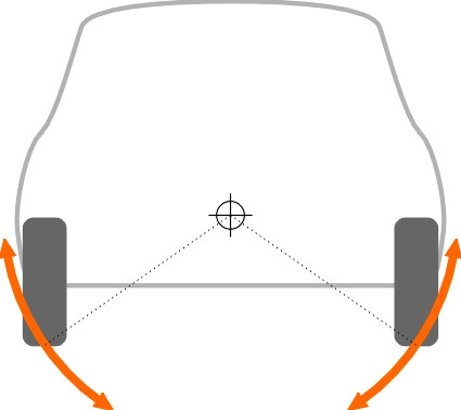 Although the load path concept is the more rigorous of the two, we shall persevere with the kinematic roll centre concept because it helps one to understand what happens when a car travels round a curve. On a curve, the position of the roll centre - specifically its height above the road surface - is important because it affects three aspects of vehicle behaviour: (a) the amount of body roll, (b) handling, and (c) tyre wear.