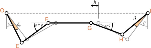 \[\begin{equation} \delta_{ip}''(0) \quad = \quad 2 \left( \frac{w}{L} \right) \end{equation}\]Appendix 2: The four-bar linkage