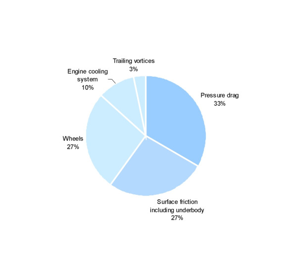However this doesn’t take into account the equipment such as wheels and suspension needed to make the vehicle roadworthy. The wheels raise the drag coefficient to about 0.15 [44]. Wing mirrors and the requirement for clearance within the wheel arches push it up to 0.3 [11]. This represents the target against which a modern production car should be measured.