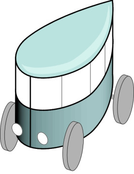 You may be puzzled about the blunt nose. Common sense suggests that a pointed nose would pierce the air more easily and produce less drag. But in practice, it’s the shape at the rear that matters, because the shape at the rear determines how and where the boundary layer separates from the vehicle body and hence the cross-sectional area of the wake. The shape of the front is relatively unimportant. Here, the speed of the air in the boundary layer rises consistently as it moves around the nose and along the vehicle sides and roof, so the pressure is falling and with local exceptions the boundary layer has no difficulty holding on to the surface - in fact its contribution to pressure drag may be small and in some places negative. Therefore a blunt leading edge is as good as a sharp one, and moreover it has practical advantages because although not ideal, a rounded front is better suited than a pointed one to accommodate passengers or a bulky cargo. It is also lighter, less cumbersome to manoeuvre, and less prone to damage.